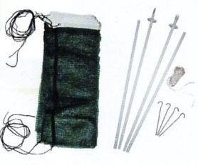 Síť a kovové stojany jsou baleny v praktickém látkovém vaku.