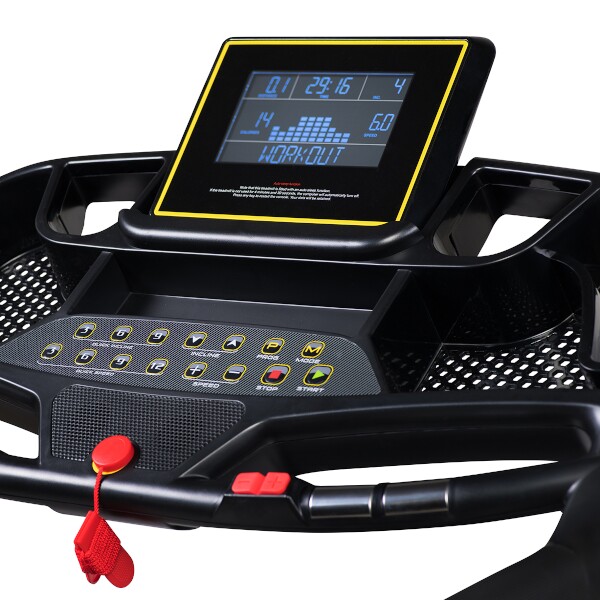 Klávesnice je vybavena tlačítky Start, Stop, Program, Mode. Dále se zde nachází ltačítka pro plynulou změnu rychlosti a skokovou změnu rychlosti na 3, 6, 9, nebo 12 km/h a o řadu výše se nachází tlačítka pro plynulou změnu úhlu běžecké plochy a tlačítka pro skokovou změnu úhlu na 3, 6, nebo 9°.