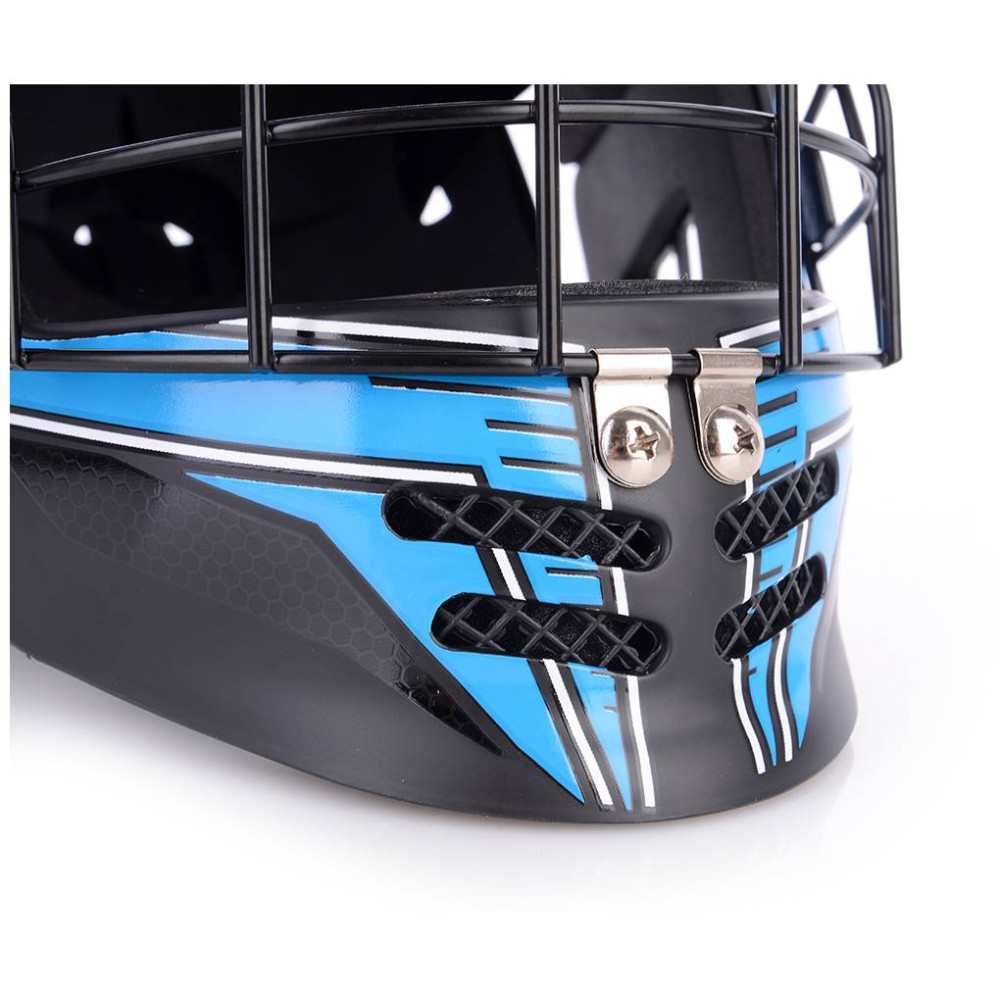 Anatomicky polstrovaná a perfektně sedí díky nastavitelným páskům. Kvalitnější ventilace vzduchu je umožněna pomocí speciálních otvorů. Tvar masky zajišťuje brankáři velký přehled, bezpečnost a komfort.