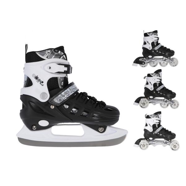 NH 10905 A NILS EXTREME je set kolečkových a zimních bruslí určený pro začínající a středně pokročilé uživatele. Jejich vysoká kvalita zaručuje dlouhou životnost a je jistou volbou na dlouhý čas. Model NH 10905 A byl také vybaven třístupňovým nastavením velikosti boty, kdy je možné ji nastavit dle potřeb uživatele. Je to způsob, jak ušetřit čas i peníze. Takové řešení prodlužuje jejich životnost a umožňuje, aby byly používány více než jednou osobou.