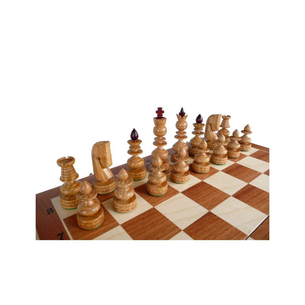 Hrací deska šachovnice je vyrobená z masivního dřeva.