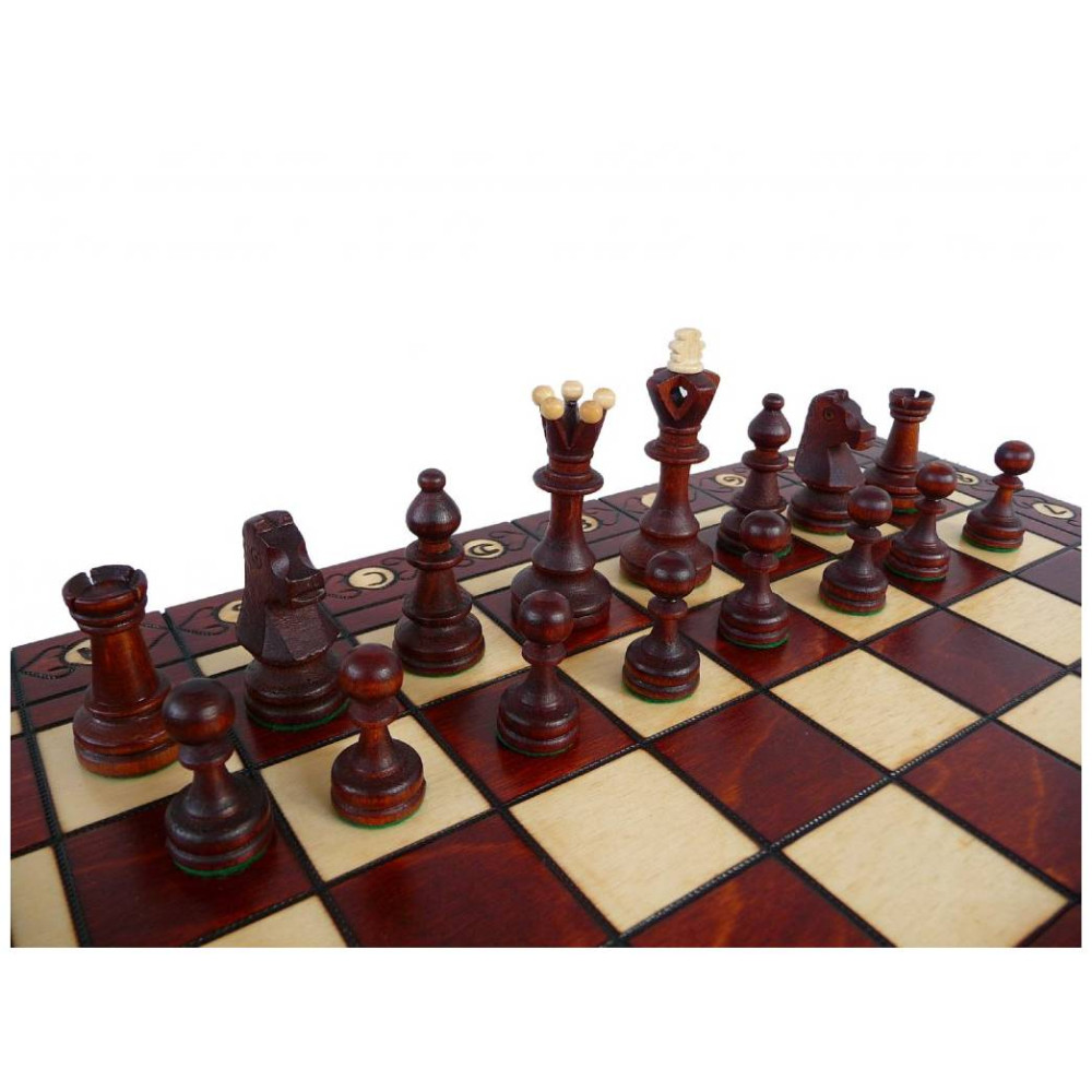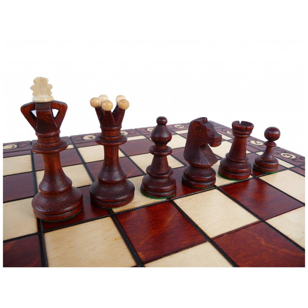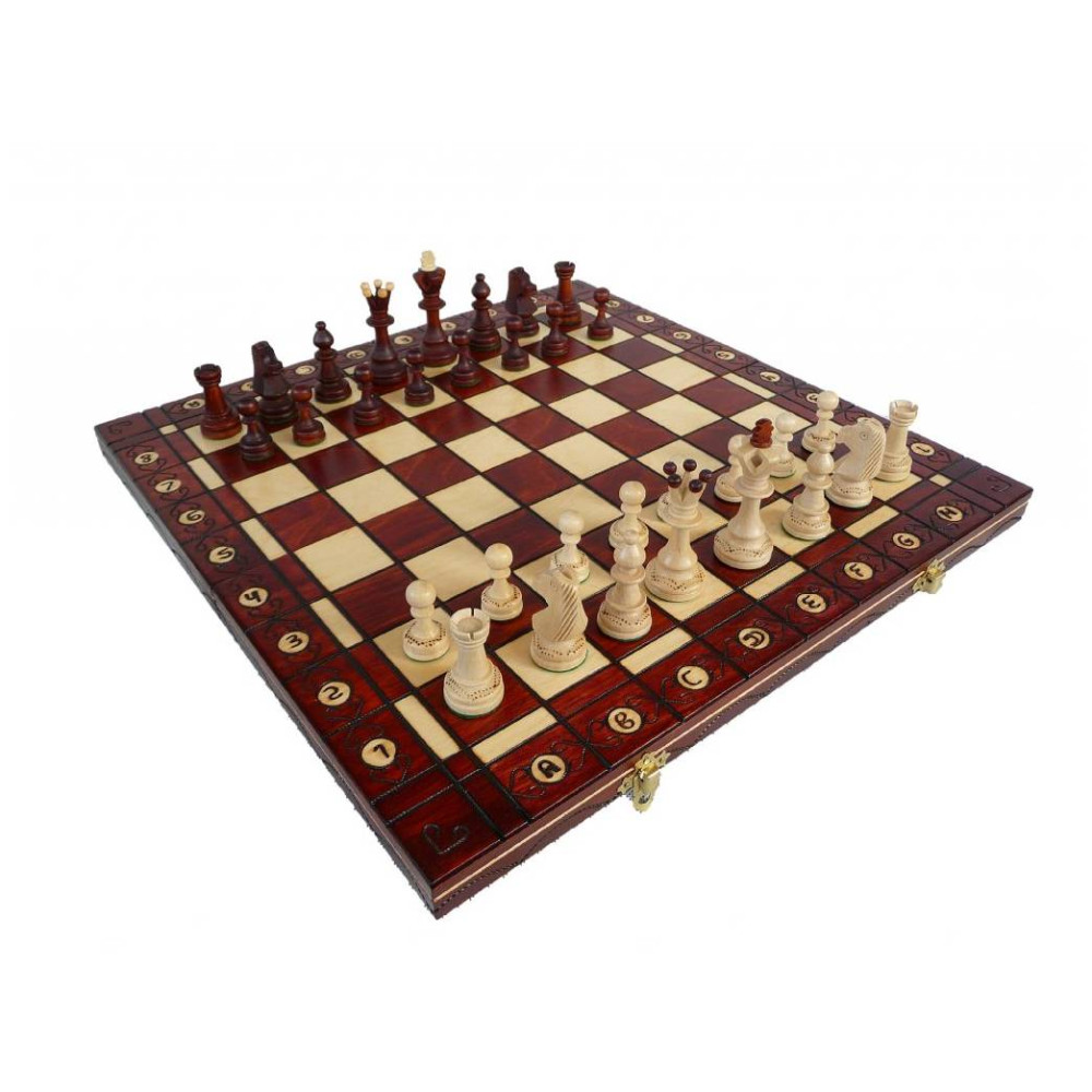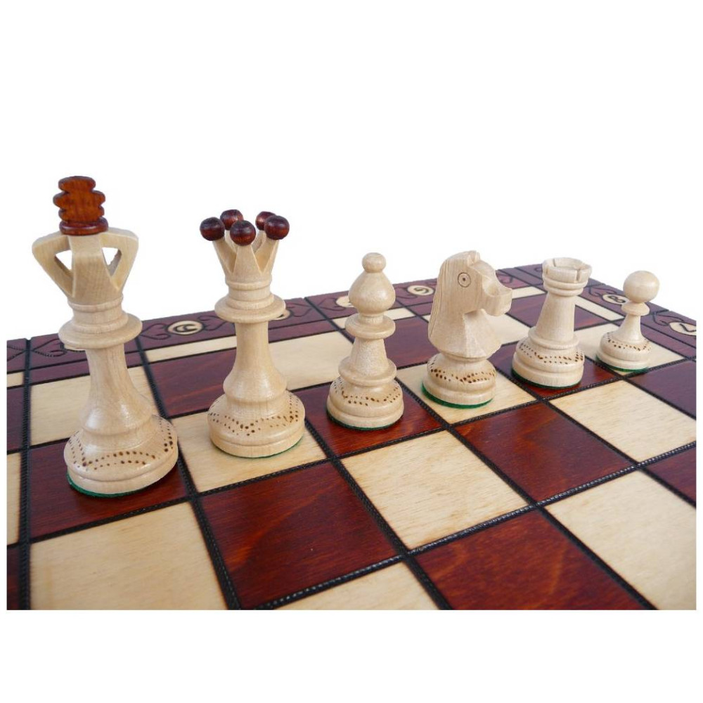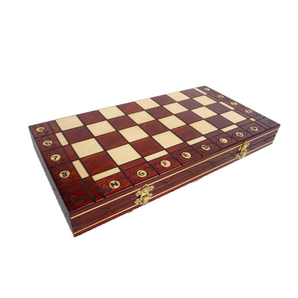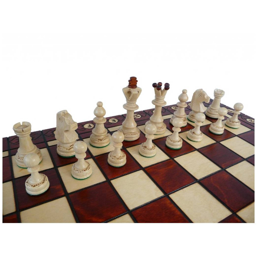 Hrací deska šachovnice je vyrobená z masivního dřeva.