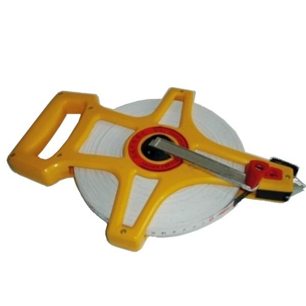 Pásmo o délce 100 m. Pohodlné držadlo s převrátitelnou kličkou pro rychlé namotání pásma.