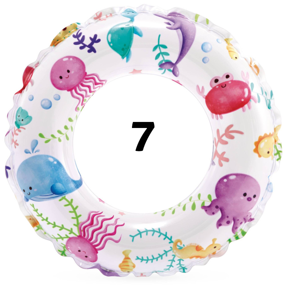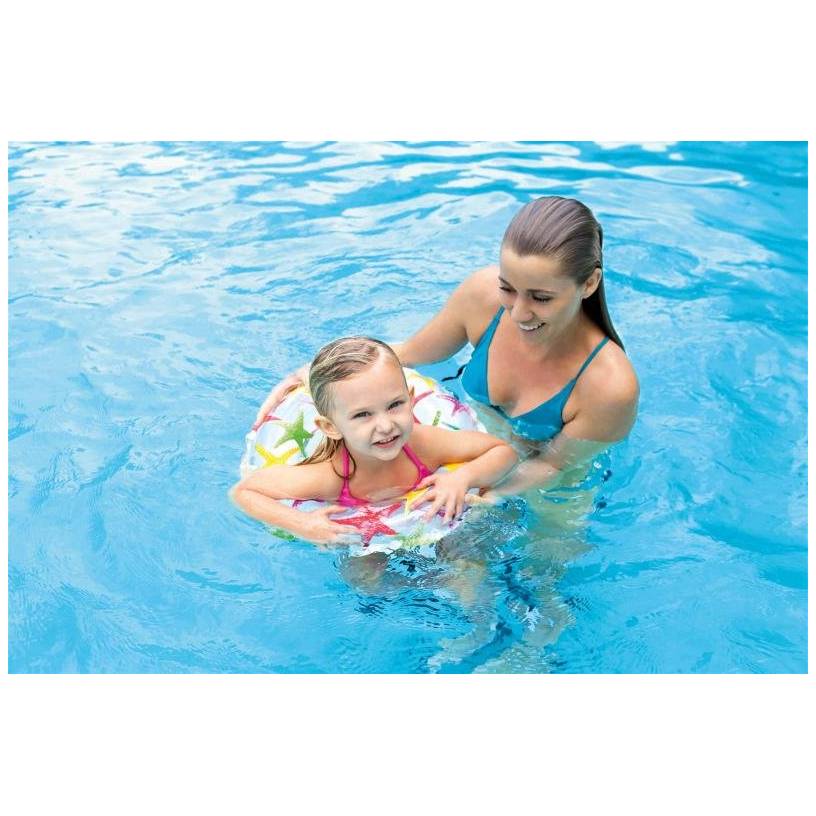 Dětský nafukovací kruh Intex s barevnými obrázky potěší každého začínajícího plavce.