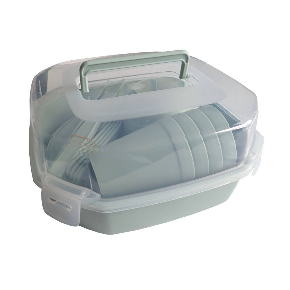 Tato kempingová sada plastového nádobí je ideální volbou pro každého, kdo hledá kompletní, praktické a snadno přenosné řešení pro stravování na cestách, při kempování, piknicích nebo jiných outdoorových aktivitách. Sada se skládá z 26 kusů nádobí, což zahrnuje vše potřebné pro servírování jídla a pití až pro čtyři osoby.