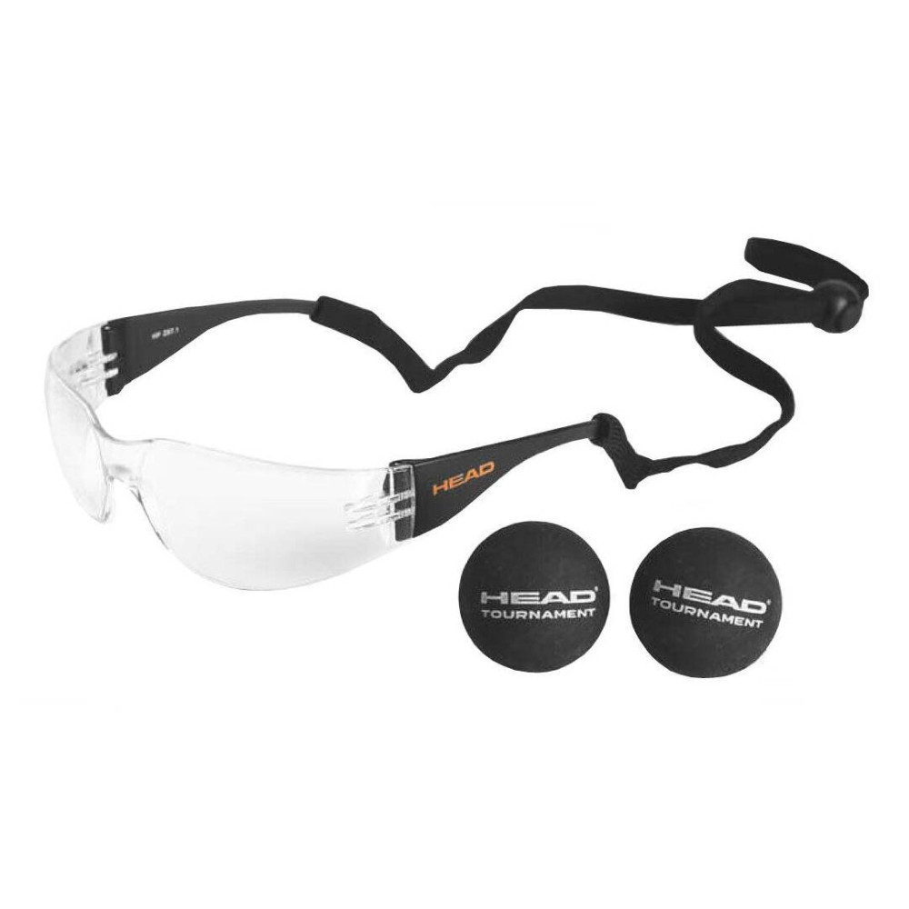Celá sada totiž obsahuje squashovou raketu, dva squashové míče a brýle.