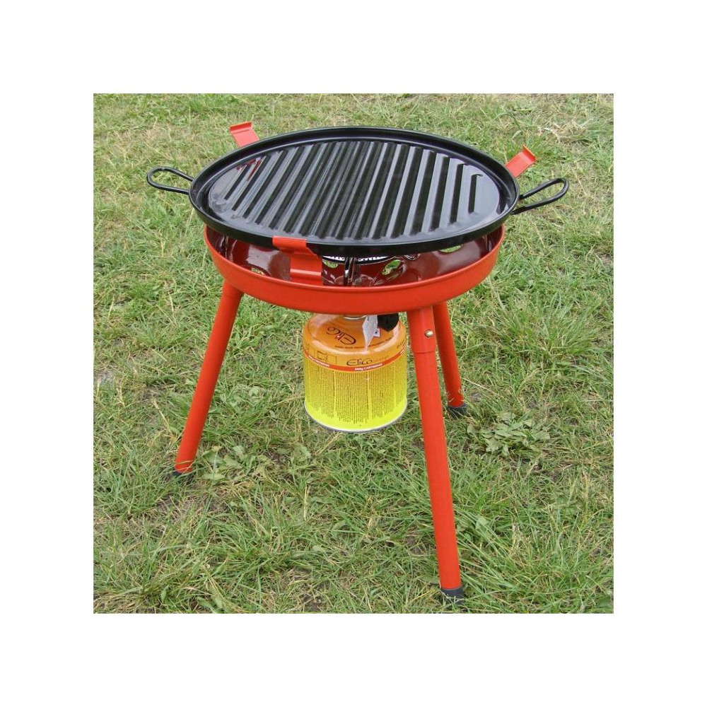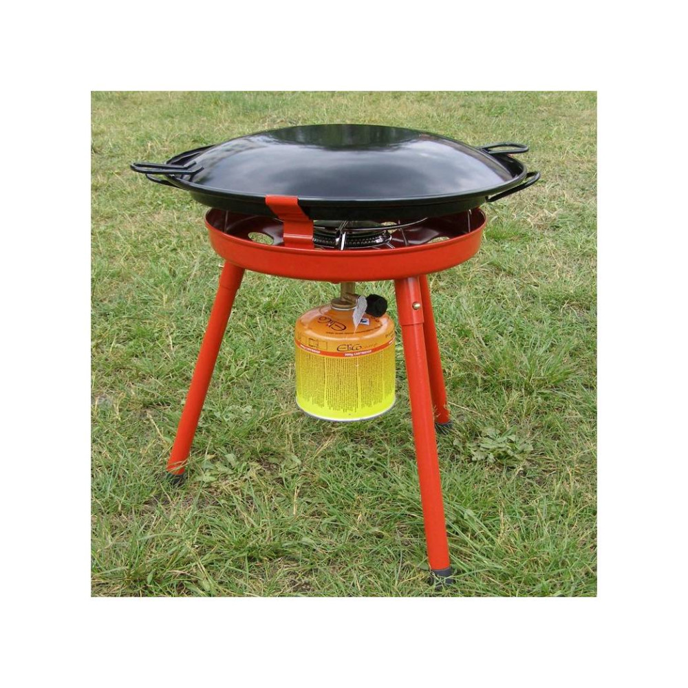 Součástí balení je vařič, 3 nohy, grilovací deska pro plancha grilování o průměru 33,5 cm a velká pánev o průměru 39,5 cm.